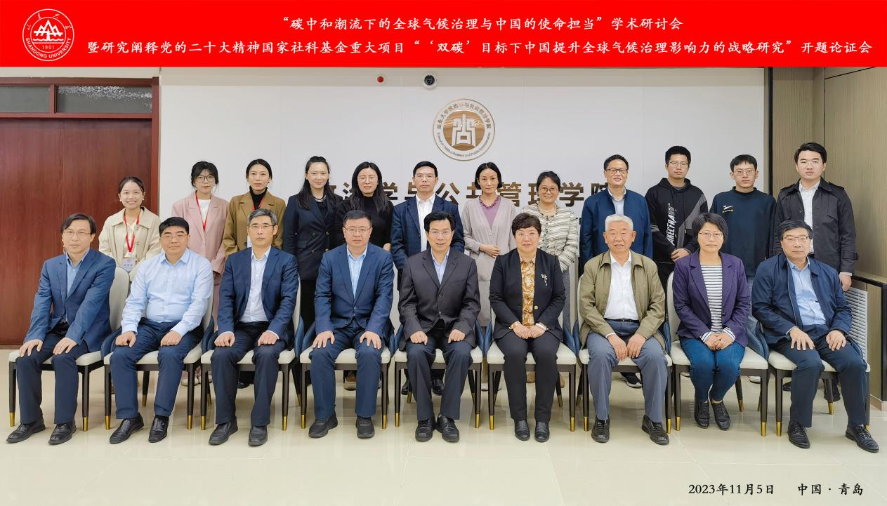 2023年11月5日,由澳门网投官方网站主办,澳门网投官方网站环境政治研究所和澳门网投官方网站全球治理与国际组织研究中心承办的“碳中和潮流下的全球气候治理与中国的使命担当”学术研讨会暨研究阐释党的二十大精神国家社科基金重大项目“‘双碳’目标下中国提升全球气候治理影响力的战略研究”开题论证会在青岛召开。来自中共中央党校(国家行政学院)、复旦大学、吉林大学、中国政法大学、南京信息工程大学、天津外国语大学、青岛大学等高校以及国家应对气候变化战略研究和国际合作中心的专家学者及项目组成员通过线上与线下相结合的方式共同参会。