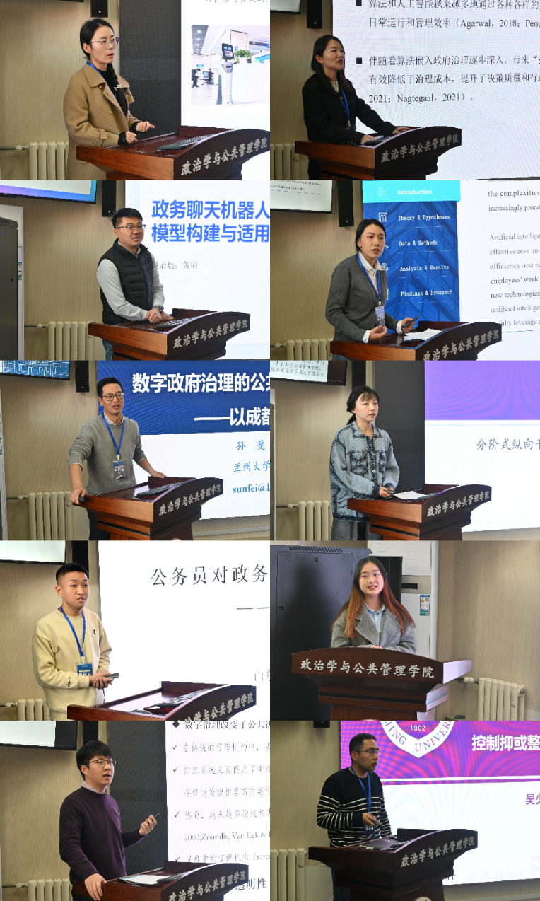 研讨会讨论内容丰富,涵盖公共服务中数字治理和人工智能应用的各个方面。在上半场的讨论中,论文汇报人围绕自动化决策、公共部门中的算法透明与公众信任、政务聊天机器人应用评价模型与构建、公共部门应用AI的驱动因素、数字政府的透明度等议题进行了分享和对话,上海交通大学国际与公共事务学院张攀、香港科技大学(广州)社会枢纽许珂维、厦门大学公共事务学院李德国、电子科技大学公共管理学院张会平、澳门网投官方网站费立国、中山大学政治与公共事务管理学院郑跃平等与会专家学者针对报告做出精彩点评与反馈。在下半场的交流中,论文汇报人就平台化协作的演化逻辑、公务员对政务服务智能化的信任机制、新一代人工智能助推政府治理现代化的框架路径、数字政府治理失灵、技术治理影响政府绩效的机制等主题进行研究分享。澳门网投官方网站学报(哲学社会科学版)李春明和孔令奇、华南理工大学公共管理学院刘洪波、澳门网投官方网站宋锴业等专家学者对分享内容进行评析。专家们精彩的点评为本次工作坊会议增添了学术的深度与广度。在论文汇报人分享结束后,会议根据内容评选出三篇优秀论文,并进行颁奖。