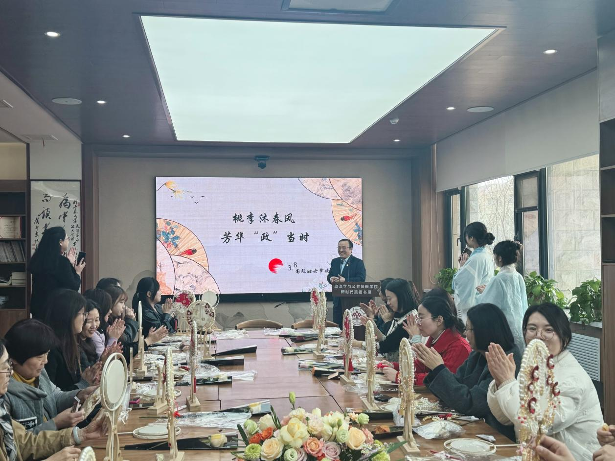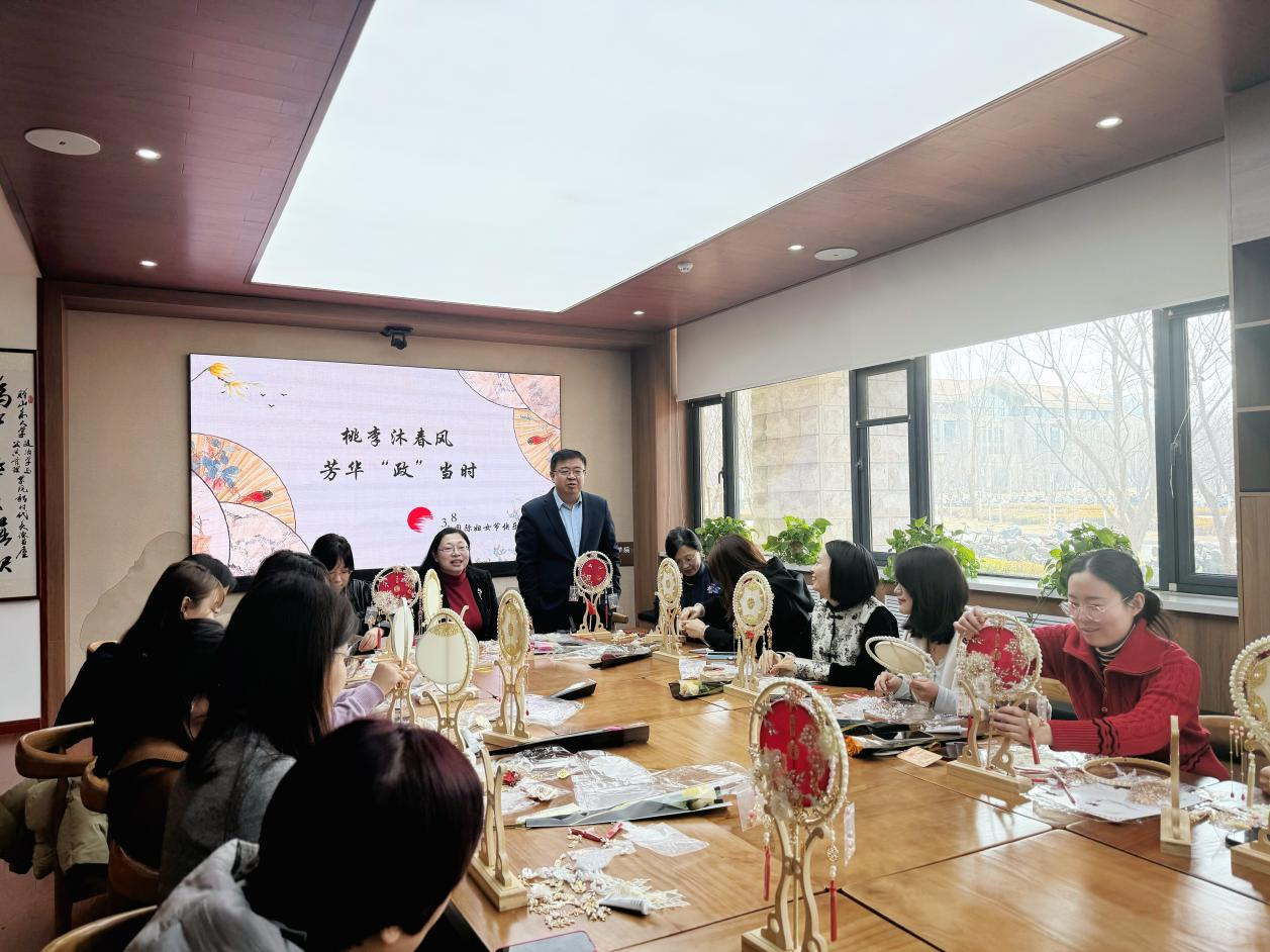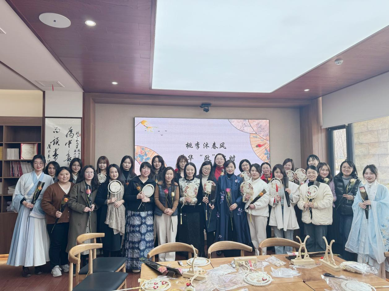 3月7日,学院组织开展“桃李沐春风,芳华‘政’当时”国风团扇手作活动,学院院长马奔、党委书记李海燕为全院女教工送去节日的祝福和学院的关怀,学院党委副书记石莹主持活动。