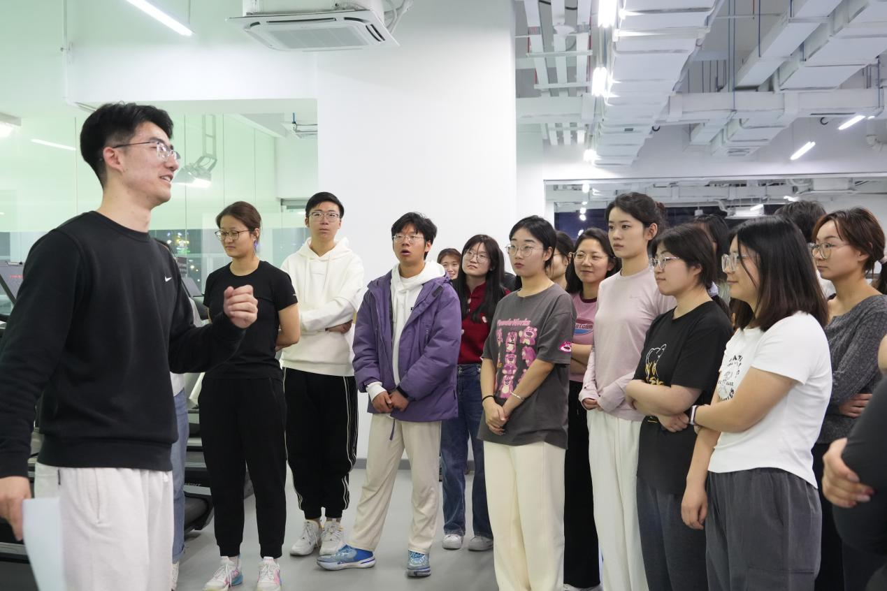 活动主要分为三个板块进行,分别是教师讲授环节、教师答疑环节与学生实践环节。首先,于英豪老师为大家讲解了青岛校区体育馆健身房的整体布局与大致分区。随后以“示范+讲解”的模式,为大家依次介绍了体育馆中各项健身器材的使用方法与注意事项。