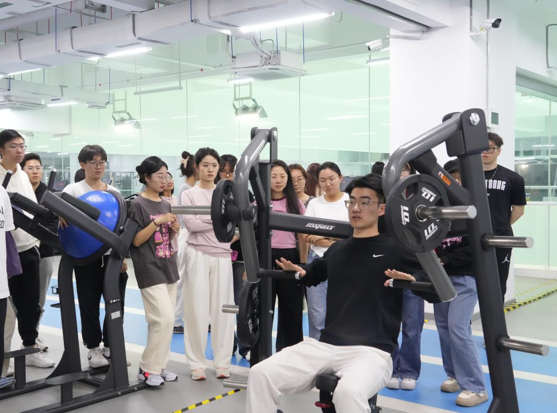 最后,同学们在健身房内选择自己感兴趣的健身器材上手尝试,并就实践中产生的问题向老师提问,于老师进行了耐心解答。在活动中,同学们收获了有关于健身器材的使用、正确的健身姿势、健身计划的制定等一系列知识,并亲身尝试了健身房各类健身器材的使用方法。