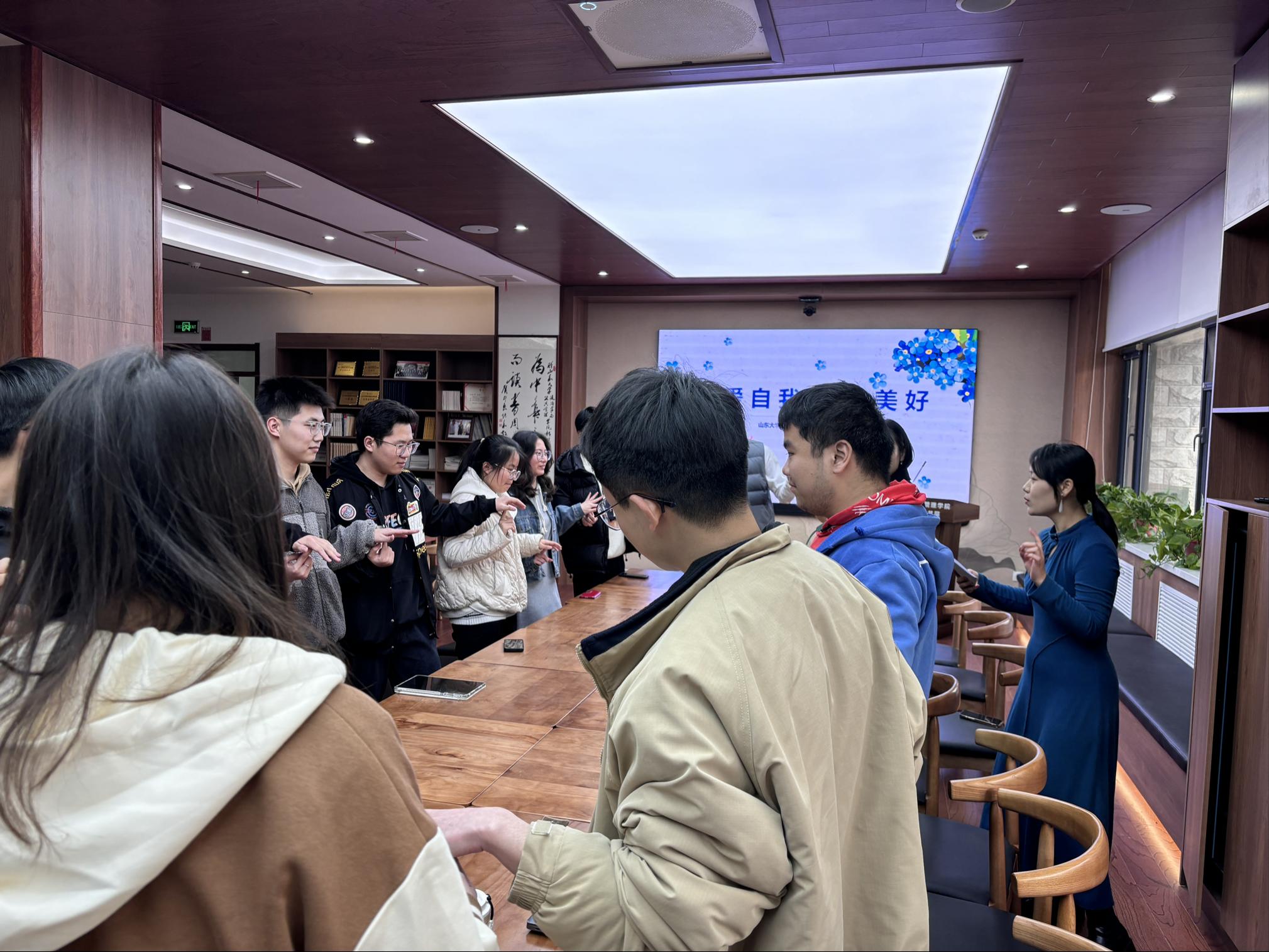 3月28日,澳门网投官方网站于华岗苑南楼一楼举办新时代美德书屋心理健康系列活动—“关爱自己,遇见美好”团辅沙龙,活动邀请澳门网投官方网站(青岛)心理健康教育与咨询中心专职教师孔涵担任主讲并做团体辅导,学院党委副书记马桂兰、学院辅导员及部分本科生、硕博生参加此次心理活动。