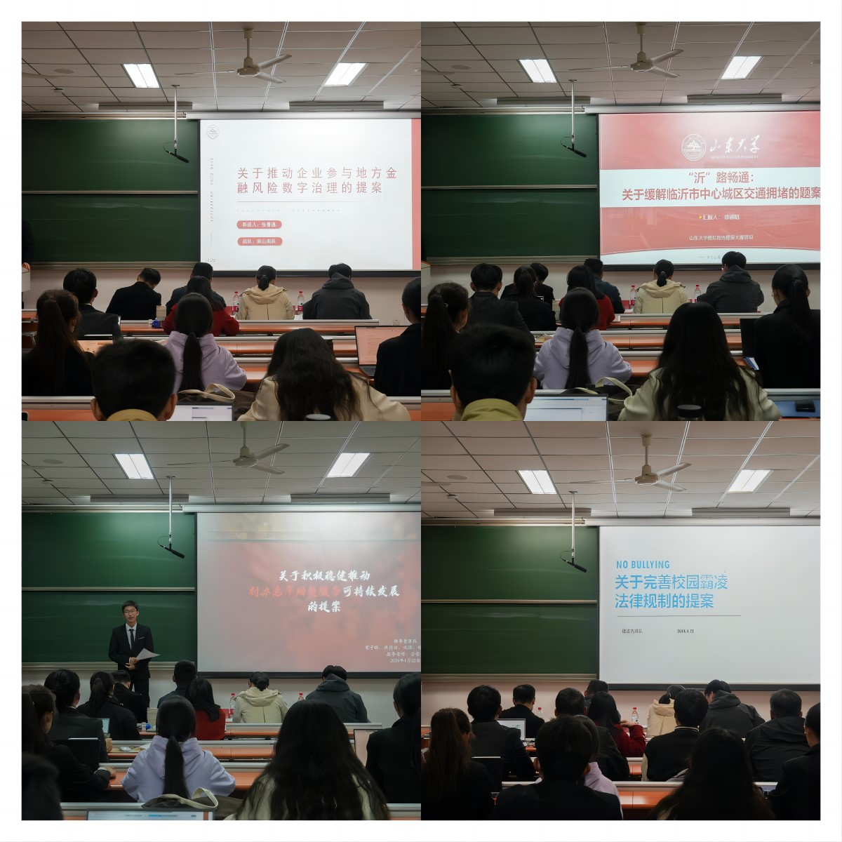 本届比赛吸引了来自青岛校区多个学院的三十三支团队参赛,经过初赛评委选拔,共有十二支团队进入决赛。在决赛答辩环节,各团队发言人从调研实践出发,针对社会生活的难点痛点,采用问卷、访谈等“线上+线下”的方式进行调研,以PPT和调查报告的形式进行展示,以“模拟政协委员”的身份,围绕文化遗产保护、社区互助养老、海洋文旅开发、遏制校园霸凌等主题提出了具有公共情怀、现实关切、创新思维的“模拟政协提案”,展现了同学们扎实的理论功底和心系家国大事、勇于开拓创新的精神风采。
