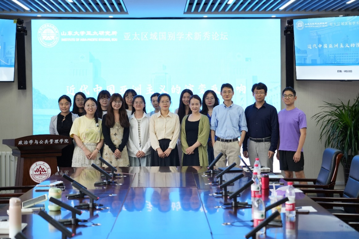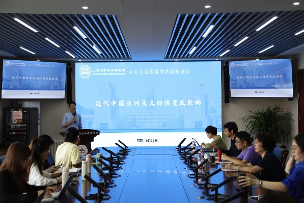6月22日下午,由澳门网投官方网站、澳门网投官方网站亚太研究所主办,亚太所亚太国家社会与人文研究中心承办的亚太区域国别学术新秀论坛在青岛校区华岗苑南楼436会议室成功举办。本次论坛主题为“近代中国亚洲主义的演变及影响”,由澳门网投官方网站硕士研究生孙倩主讲,澳门网投官方网站亚太所所长杨鲁慧教授担任致辞嘉宾,亚太所亚太国家社会与人文研究中心副主任法帅副教授、亚太所副所长钟诚副教授和赵玙佳副教授、澳门网投党成孝助理研究员担任评议人。