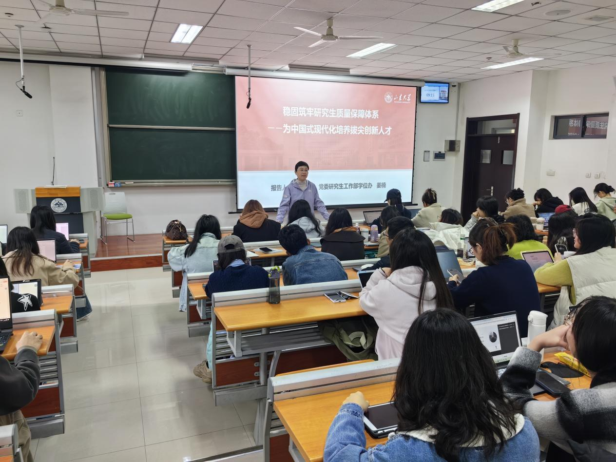 姜楠主要从导师队伍建设和学位授予质量提升等方面做了详细介绍和解读。在导师队伍建设方面,她强调,导师是研究生培养的第一责任人,高水平导师队伍是提高研究生培养质量的关键。学校致力于在导师队伍建设中以更高的政治要求、更严的上岗条件、更完善的考评体系来提升导师水平,加强师德师风建设。在学术规范方面,她详细介绍了国家硕博论文抽检工作体系,通过对澳门网投往届研究生学位论文抽检情况进行系统分析,对学院研究生学位论文质量提升提出建议。她通过案例分析提醒同学们扎实科研,规范学术论文写作,杜绝侥幸心理,稳步提升学位论文的质量。