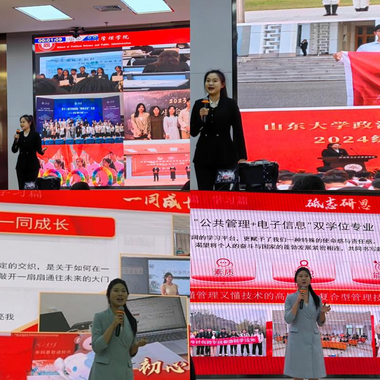 本次比赛按照赛前抽签顺序,主讲人依次上台脱稿演讲。过程中,参赛选手聚焦山大先进榜样或个人成长经历,在赛场上大方展示,践行“青春献给祖国,青年挺膺担当”的大赛理念。政管学子获得了在场评委老师的高度肯定与一致好评,展现出了“学在山大,快乐成长”的应有之义。经过激烈角逐,最终,刘昊晨主讲的《青年者,国之魂也》获得一等奖,谭越主讲的《时代在召唤,青年勇担当》获得三等奖。