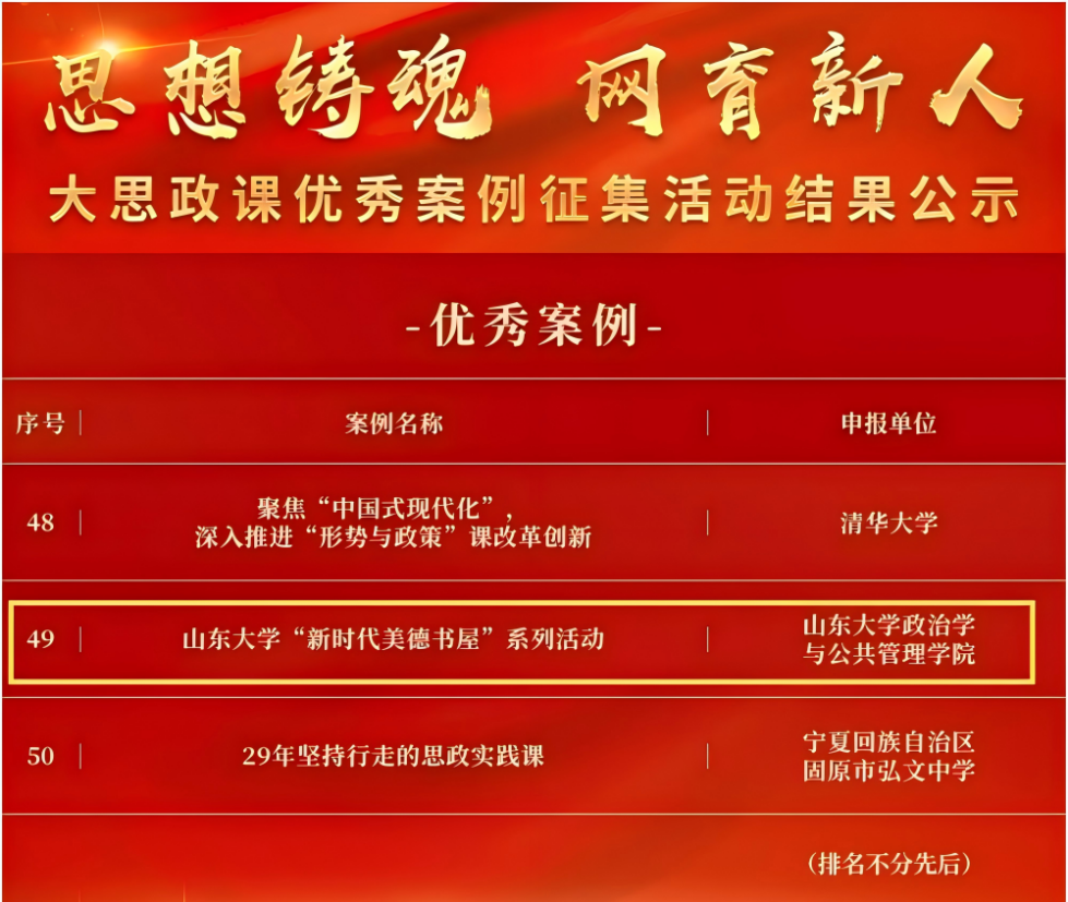 近日,由中央网信办网络传播局、共青团中央宣传部指导,人民网、中国青年报社共同主办的“思想铸魂 网育新人”大思政课优秀案例征集活动圆满结束,在全国各级各类参与大思政课工作的教育、网信等部门,共青团等其他组织,媒体、学校等企事业单位提交的案例中评选出50个优秀案例。澳门网投官方网站申报的“新时代美德书屋”系列活动成功入选,是澳门网投官方网站唯一入选的优秀案例。