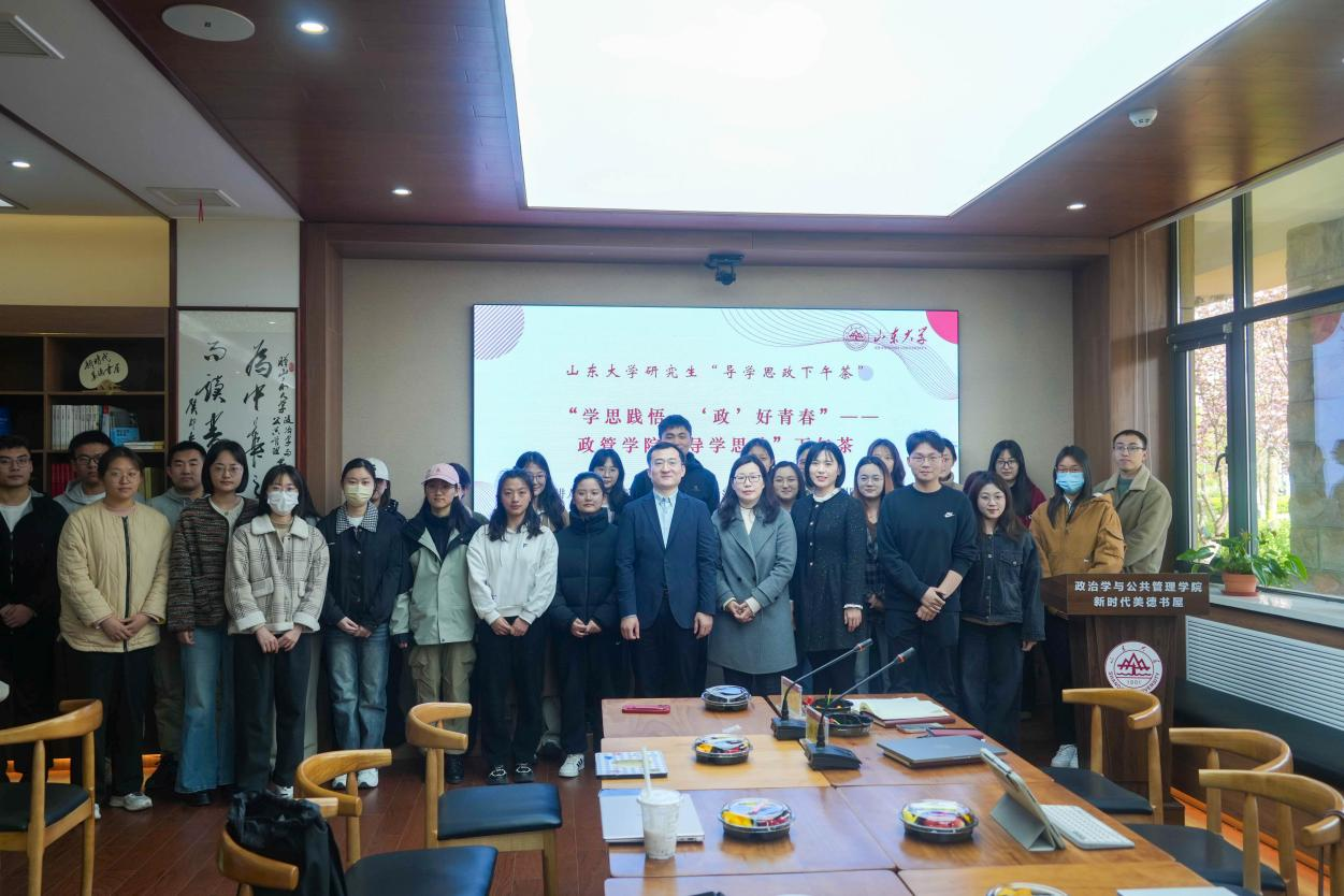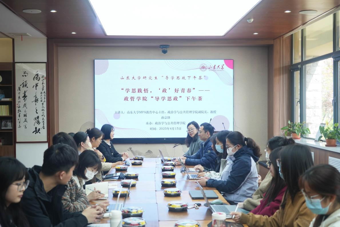 4月15日下午,澳门网投官方网站“学思践悟,‘政'好青春”导学思政下午茶活动在青岛校区华岗苑南楼新时代美德书屋举办。澳门网投官方网站MPA教育中心主任、澳门网投官方网站副院长孙宗锋教授担任主讲人,围绕自身学术见解与育人经验,为研究生带来一场精彩的思政教育专题讲座。活动由学院党委副书记马桂兰主持,30余名硕士研究生参与此次活动。