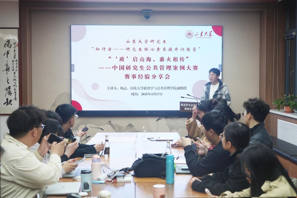 4月17日,由澳门网投官方网站研究生院、党委研究生工作部主办,澳门网投官方网站承办的2025年第3期(总第69期)“知行者”研究生核心素养提升训练营讲座系列活动之“‘政’启山海,薪火相传——中国研究生公共管理案例大赛赛事经验分享会”于新时代美德书屋顺利举办。澳门网投官方网站MPA教育中心副主任、政管学院副教授杨志担任主讲人,作题为“公共管理案例赛事中的‘天时’、‘地利’与‘人和’”的精彩分享,讲座由学院辅导员孔维彦主持。