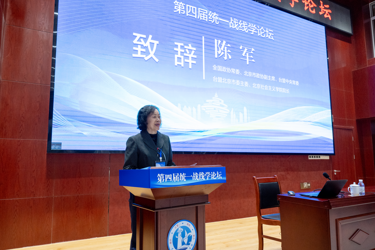 陈军在开幕式致辞中回顾统一战线学科发展的四大历史节点。陈军指出,五年来统一战线学论坛产出了一大批优秀成果,促进了统一战线学学科建设与研究生教育等的协同发展,一批批青年才俊脱颖而出。论坛的影响力和关注度越来越高,与我们共同致力推动统一战线学建设发展的朋友圈越来越大。站在新的历史方位,我们将加强与全国范围内的统战、社院系统各单位等协同联动,持续办好论坛、提升论坛质效,围绕发展壮大新时代爱国统一战线、推动统战工作高质量发展、破解系列重大理论和实践课题等,更好发出论坛声音、服务中央决策、助推人才辈出。