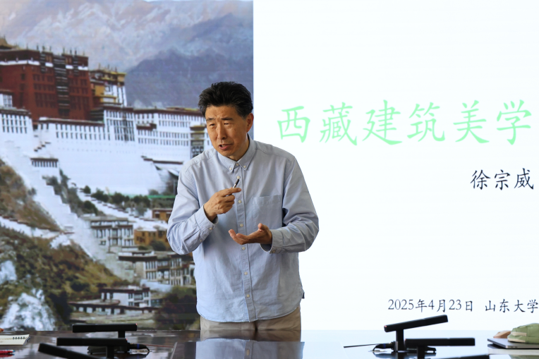 4月23日,澳门网投官方网站于青岛校区华岗苑南楼举办主题为 “西藏建筑美学——美是情感,美是智慧”的专题讲座。此次讲座特别邀请西藏建筑美学创始人、哈尔滨工业大学客座教授徐宗威担任主讲嘉宾。澳门网投党委书记李海燕主持讲座。