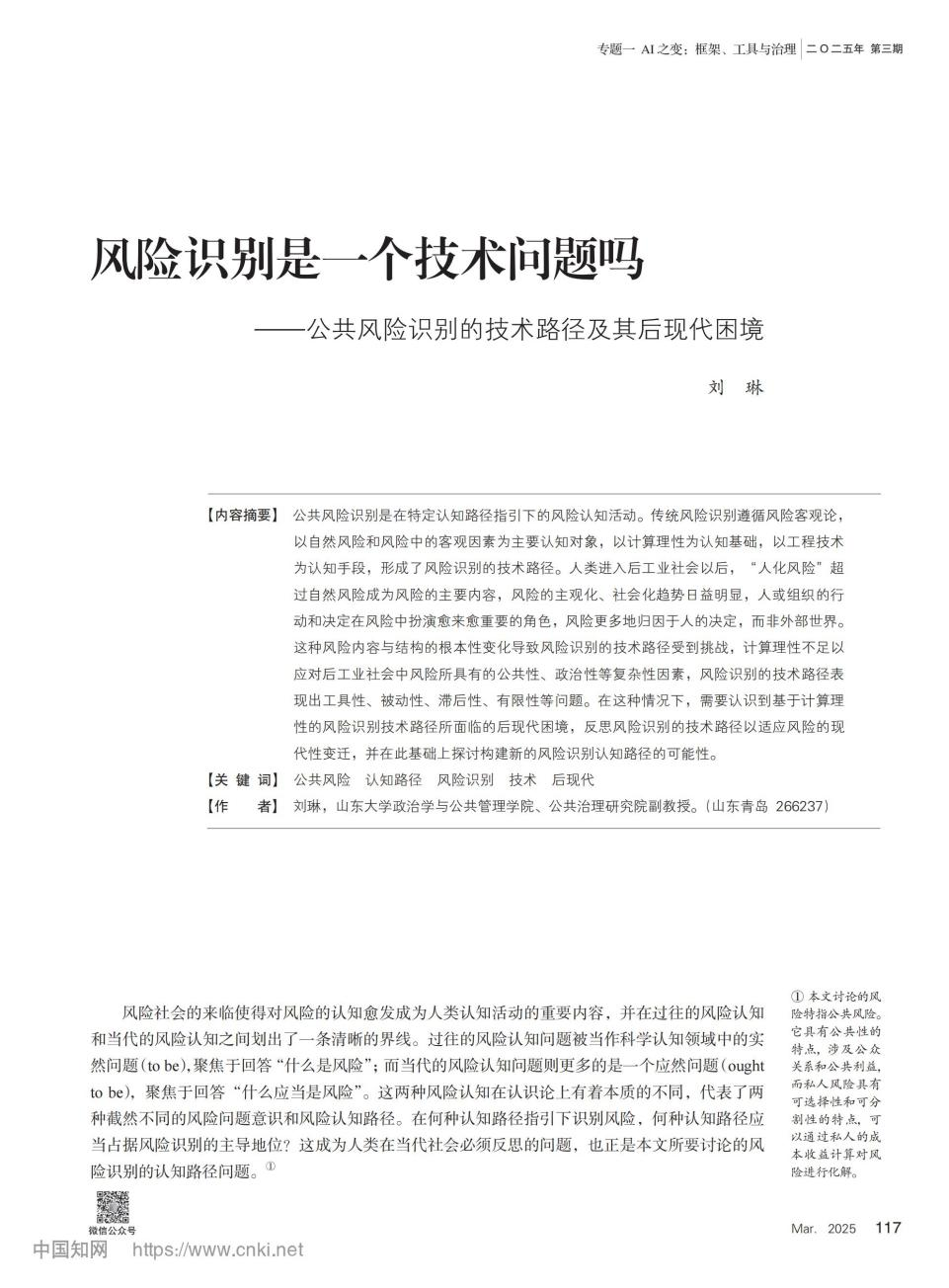 近日,澳门网投官方网站刘琳副教授(独立作者)在《探索与争鸣》发表题目为“风险识别是一个技术问题吗——公共风险识别的技术路径及其后现代困境”的学术论文。