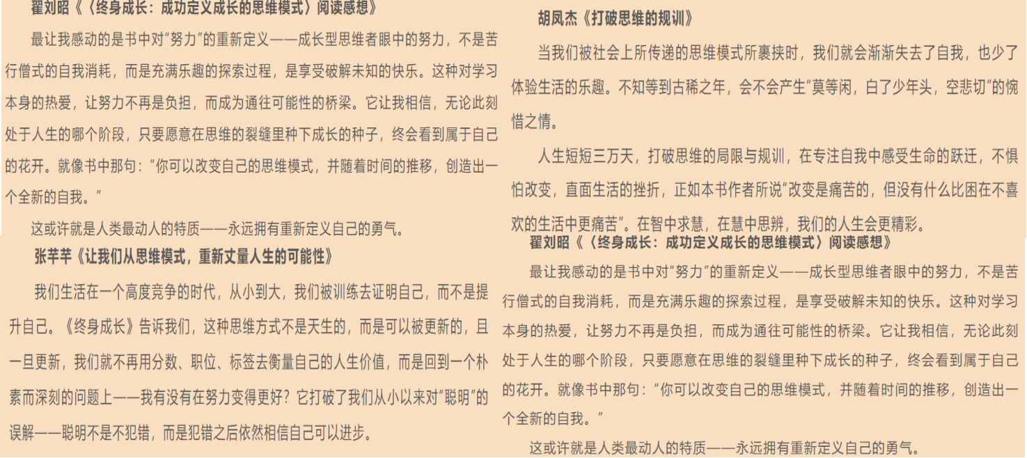 《终身成长》是李术才校长在学代会上推荐全校同学阅读的经典名著。在本书中,卡罗尔·德韦克提出了他的思维模式理论:成长型思维相信能力可塑,注重学习与突破。时值五四青年节之际,本期领读接力既是首期活动的思想续章,鼓励同学们顺沿阅读脉络深化认知厚度;亦是下一期活动的进阶之舟,助力同学们以智慧为楫,摆渡从积淀到突破的成长长河。
