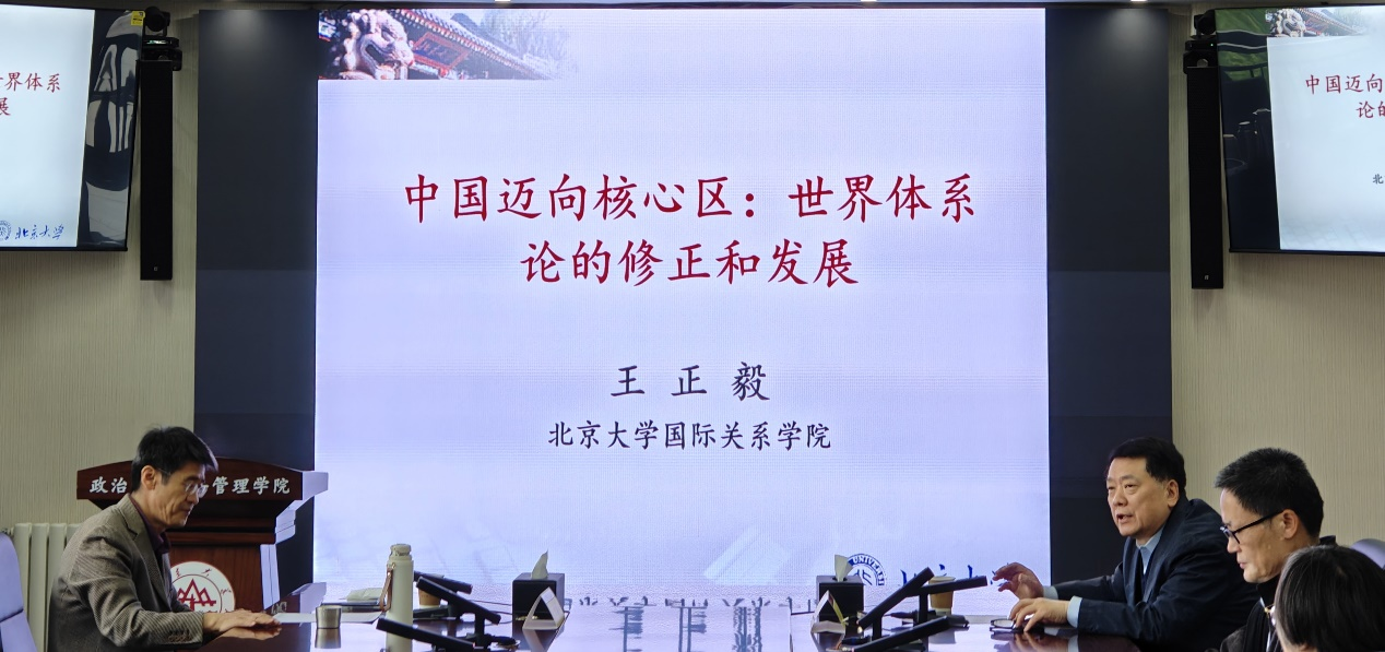 5月9日,澳门网投官方网站“全球治理与国际关系前沿讲坛”第八期在澳门网投官方网站青岛校区华岗苑南楼举行。北京大学博雅特聘教授、教育部长江学者特聘教授王正毅以“中国迈向核心区:世界体系论的修正和发展”为题作了讲座。澳门网投官方网站讲席教授、全球治理与国际组织研究中心主任秦亚青教授主持讲座,澳门网投官方网站副院长朱贵昌、国际政治专业的部分老师和研究生参加了此次学术讲座。