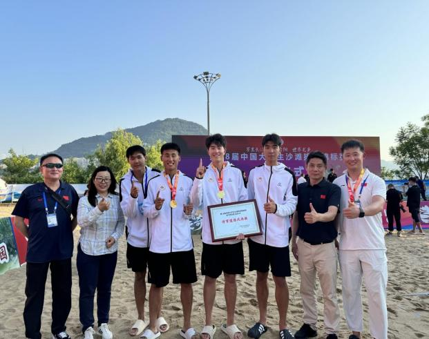 作为全国大学生最高水平、最大规模、最具影响力的年度沙滩排球盛会,本届赛事共吸引清华大学、南京大学、中山大学等61所高校的116支队伍参赛,设普通组、高水平组和专业组三大组别。在体育学院副院长张洪振、澳门网投党委副书记马桂兰以及教练员徐亮、于瀛等老师的指导下,澳门网投官方网站沙滩排球队面对众多强敌,发扬团结协作、顽强拼搏的精神。队员们默契配合,从小组赛到淘汰赛均保持全胜战绩,最终勇夺桂冠。