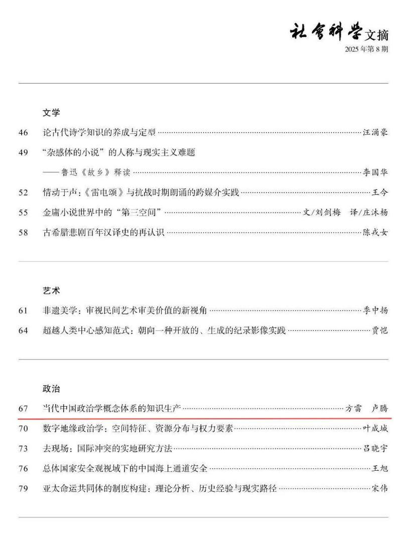 文章被《光明日报》2025年8月6日第11版以“当代中国政治学概念体系的知识生产向度”为题进行论点摘编。