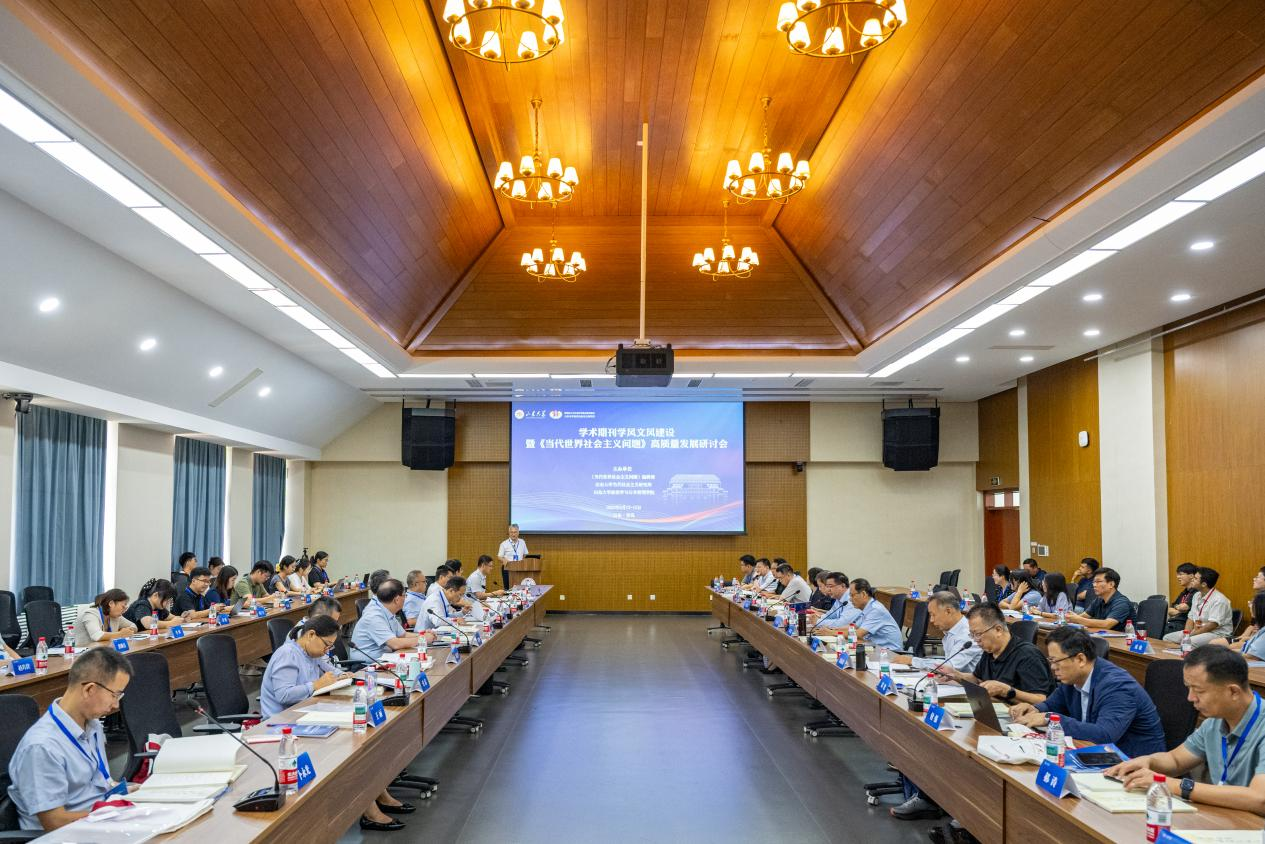 上午的主旨发言分别由《当代世界社会主义问题》副主编、编辑部主任李济时和《经济与管理评论》副主编、编辑部主任郝涛主持。《当代世界与社会主义》主编熊亮华强调要从强化问题意识入手改进学风文风。《科学社会主义》主编王中汝认为学术期刊应当承担起求实求新的责任。《吉林大学社会科学学报》主编张贤明指出学术期刊要通过总结呈现标志性概念引领构建自主知识体系。《新华文摘》高级编辑胡元梓认为办好学术期刊的核心要义是用真理回答人民之问、中国之问、时代之问、世界之问。《泰山学刊》主编何中华指出转变文风需要以有学术的思想和有思想的学术为导向。《马克思主义研究》执行主编任洁强调学术期刊可以通过选题策划引领学术思潮进而解决定位模糊、风格雷同的问题。《江淮论坛》主编陈义平认为学术期刊在推动自主知识体系建构中应遵循原创性、增益性、集成性原则。《治理研究》编委会主任蓝汉林倡议推动社会主义理论的跨学科和大综合研究。《文史哲》原副主编、《新文科理论与实践》副主编刘京希探讨了学术期刊栏目建设应当遵循的基本原则。《理论学刊》主编谭健强调人文社科期刊应促进政治话语、学术话语、大众话语有机融合。