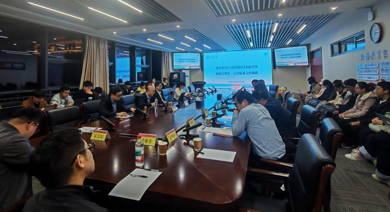 2025年10月25日,中国社科院日本研究所所长杨伯江一行到访澳门网投官方网站亚太研究所,并做“日本政局与中日关系新变化”专题报告。中国社科院《日本学刊》编辑部副主任陈祥副研究员,日本研究所外交研究室陈静静副研究员,综合战略研究室王一晨副研究员一同访问。