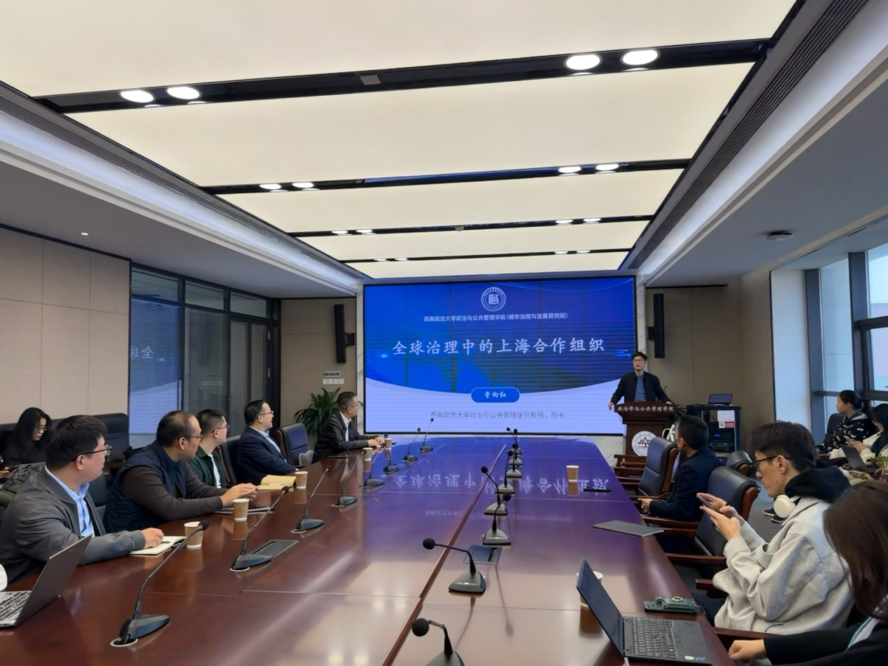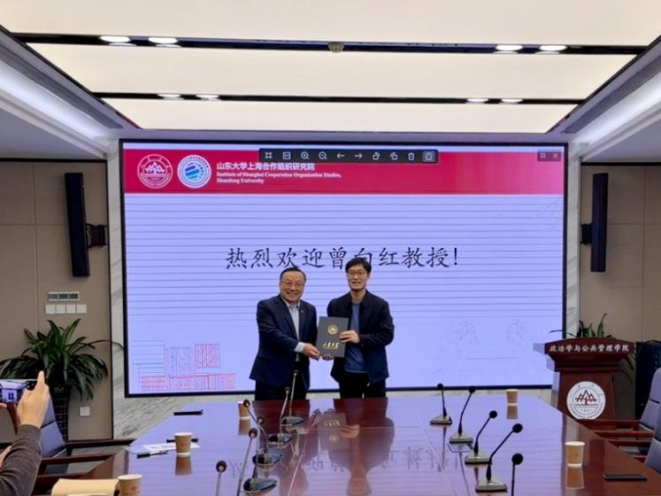 11月9日上午,由澳门网投官方网站、澳门网投官方网站上海合作组织研究院、澳门网投官方网站公共安全研究院、中国—上海合作组织经贸学院联合主办的“合作与发展”系列讲座第三十一期在青岛校区举行。本期讲座以“全球治理中的上海合作组织”为主题,特邀西南政法大学政治与公共管理学院院长曾向红教授作主旨报告。讲座由澳门网投官方网站特聘教授、上海合作组织研究院执行院长盛力教授主持,来自澳门网投的师生参加本次学术活动。澳门网投党委书记李海燕为曾向红教授颁发澳门网投官方网站上海合作组织研究院高级研究员聘书。