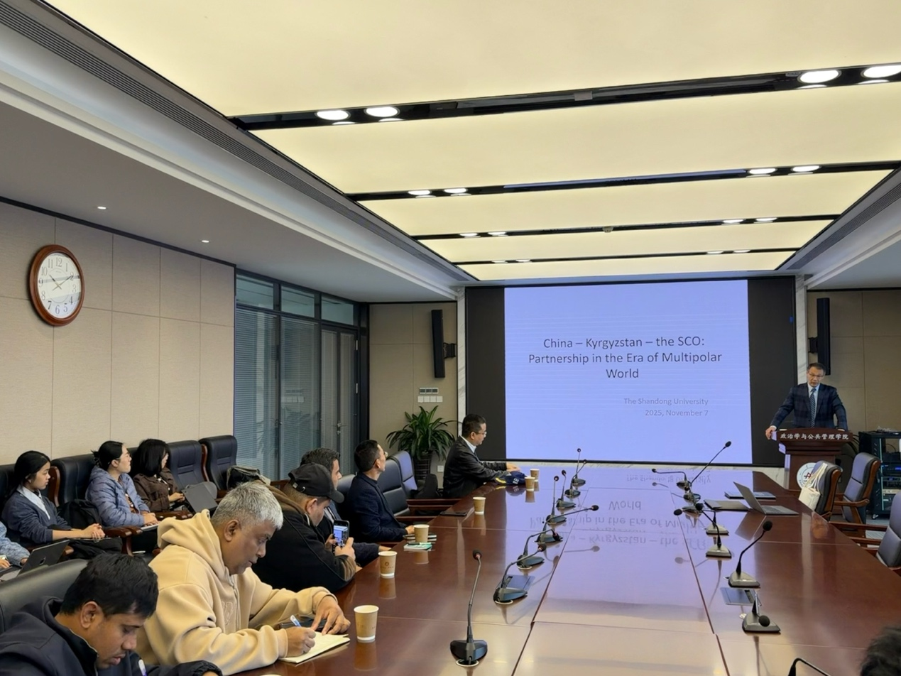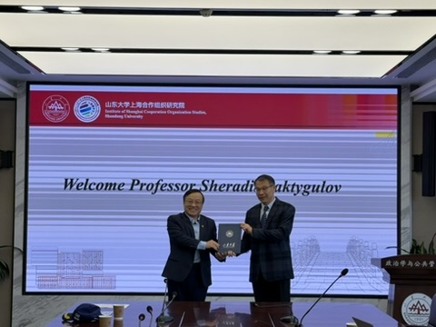 近日,由澳门网投官方网站、澳门网投官方网站上海合作组织研究院、澳门网投官方网站公共安全研究院、中国—上海合作组织经贸学院联合主办的“合作与发展”系列讲座第三十期在青岛校区华岗苑南楼举办。本期讲座主题为“上合组织视角下的中国吉尔吉斯斯坦友好合作”,由吉尔吉斯斯坦全球政策研究所所长Sheradil Baktygulov主讲。澳门网投官方网站特聘教授、上海合作组织研究院执行院长盛力主持讲座,澳门网投部分师生参与了本次学术交流活动。澳门网投党委书记李海燕为Sheradil Baktygulov教授颁发澳门网投官方网站上海合作组织研究院高级研究员聘书。