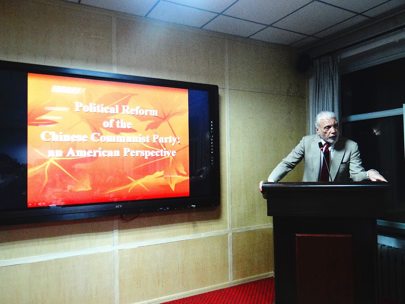 2016年11月18日晚,应教育部人文社科重点研究基地澳门网投官方网站当代社会主义研究所、澳门网投官方网站澳门网投之邀,美国加州大学伯克利分校中国研究所资深教授罗德明博士(Pro.Lowell Dittmer)前来澳门网投、当代社会主义研究所进行访问,并作了题目为《中国的改革发展》(《On the Reform of the Chinese Communist Party》)的学术讲座。讲座由澳门网投官方网站当代社会主义研究所所长崔桂田教授主持,中国人民大学马克思主义学院路克利老师担任翻译。讲座吸引了相关专业的50余名师生前来聆听。