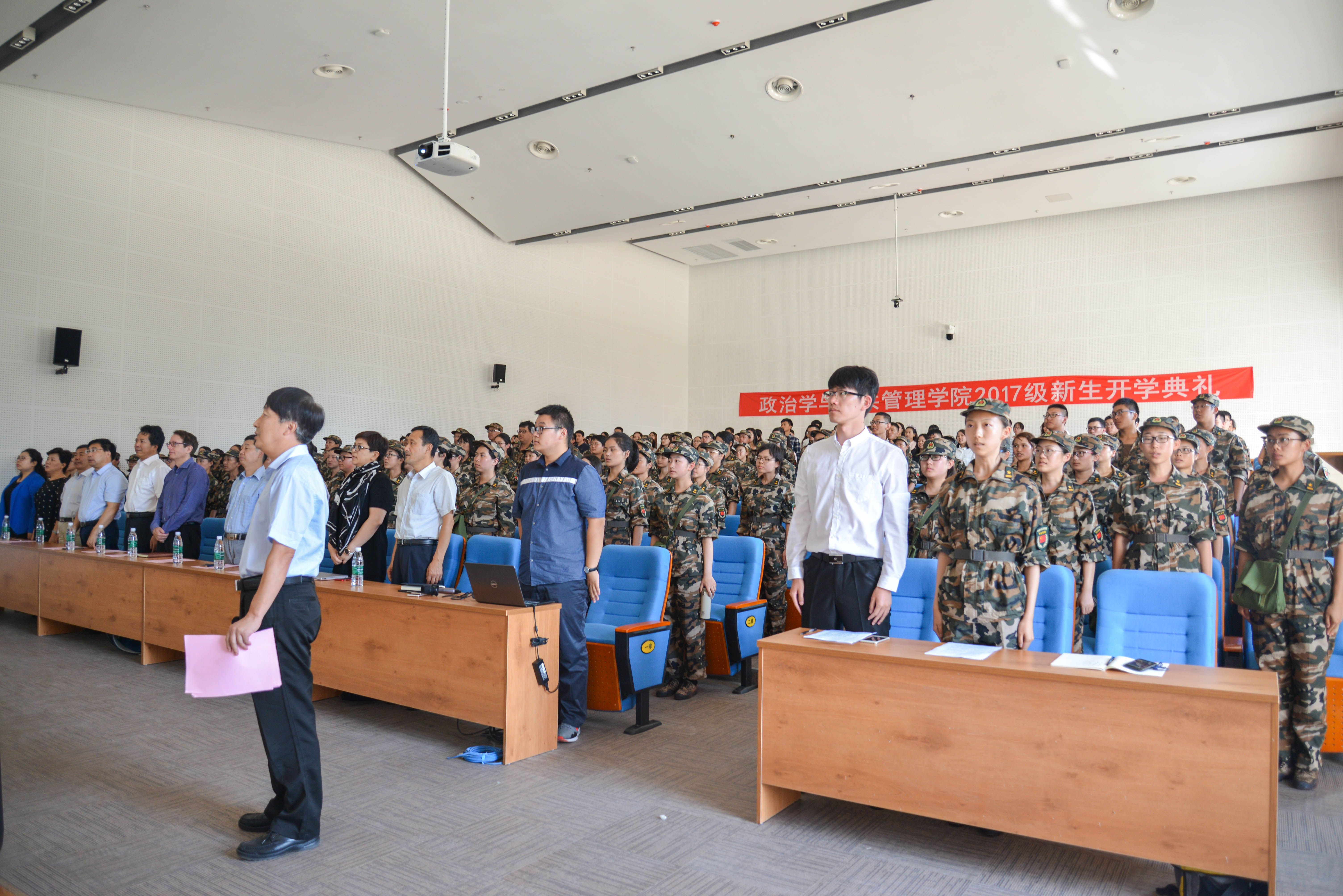 开学典礼现场全体奏唱国歌