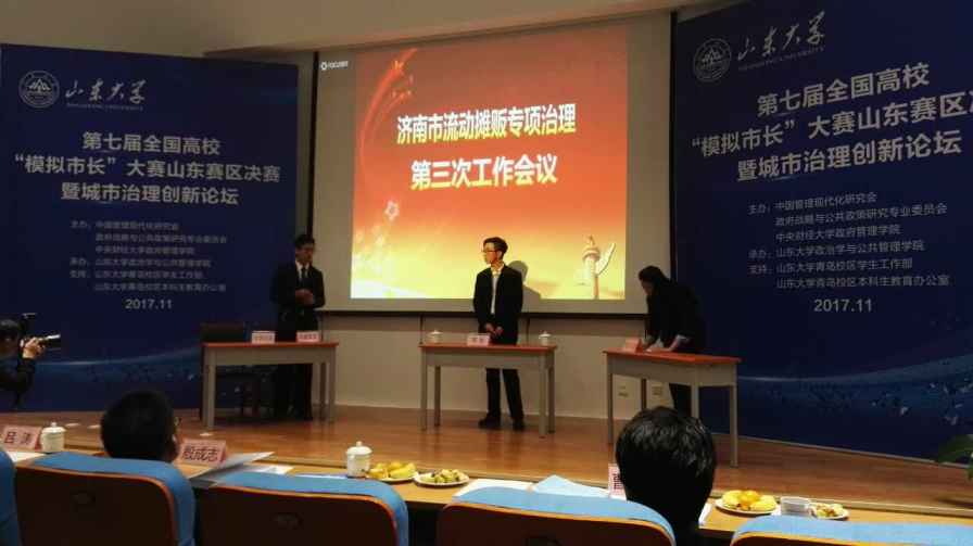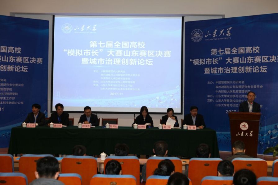 11月11日,第七届全国高校“模拟市长”大赛山东赛区决赛暨城市治理创新论坛在澳门网投官方网站青岛校区成功举办。本次活动由中国管理现代化研究会政府战略与公共政策研究专业委员会和中央财经大学政府管理学院主办,澳门网投官方网站承办,并得到澳门网投官方网站青岛校区学生工作部和本科生教育办公室的支持。来自澳门网投官方网站、中国石油大学、山东师范大学、山东农业大学、青岛大学、济南大学、曲阜师范大学、山东工商学院等高校的10支团队参加了决赛。