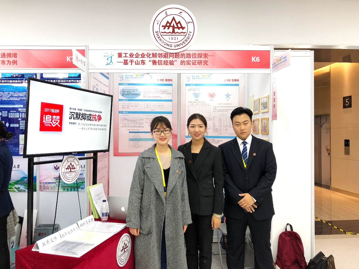由马奔老师指导的2014级洪达、秦梦真、刘丽敏等同学组成的团队作品《重工业企业化解邻避问题的路径探索——基于山东“鲁信经验”的实证研究》获得国赛一等奖。近年来,污染类邻避冲突呈现高发态势。为探究邻避效应的影响机理,探寻邻避冲突的解决之道,该团队运用定量与定性相结合的研究方法,选取山东省聊城市与江苏省连云港市作为调研地,对两地四处邻避设施周边居民进行实地走访与问卷调查。为改善生态环境、疏导民众诉求、培育社会资本、构建经济与生态共赢的和谐社会提供了创新性思路。