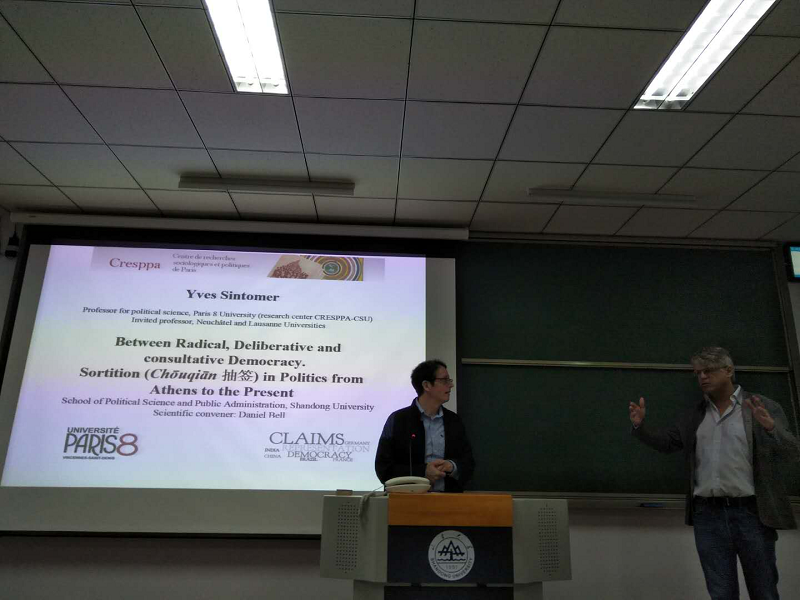 4月26日晚,法国大学研究院Yves Robert Sintomer院士在青岛校区振声苑做了关于抽签政治的讲座,该讲座由澳门网投官方网站主办,院长贝淡宁主持了讲座,学院专业师生70余人参加了讲座。