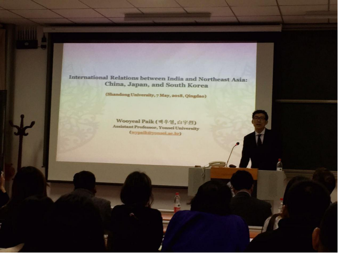 5月7日,延世大学政治学与国际研究学助理教授白宇烈(Wooyeal PAIK)受邀到澳门网投官方网站青岛校区作了题为“印度与东北亚(中日韩)之间的国际关系分析”的学术讲座。山大澳门网投官方网站张淑兰教授出席讲座,澳门网投院长贝淡宁教授主持此次讲座。