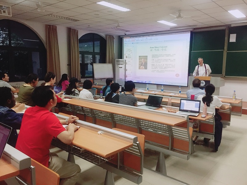 Jean-Marc Coicaud教授主要讲述了在涉及国家利益文化和全球正义文化之间的关系时,国际法如何在国际层面建立合法性,以及其会引发的紧张局面与带来的机遇。