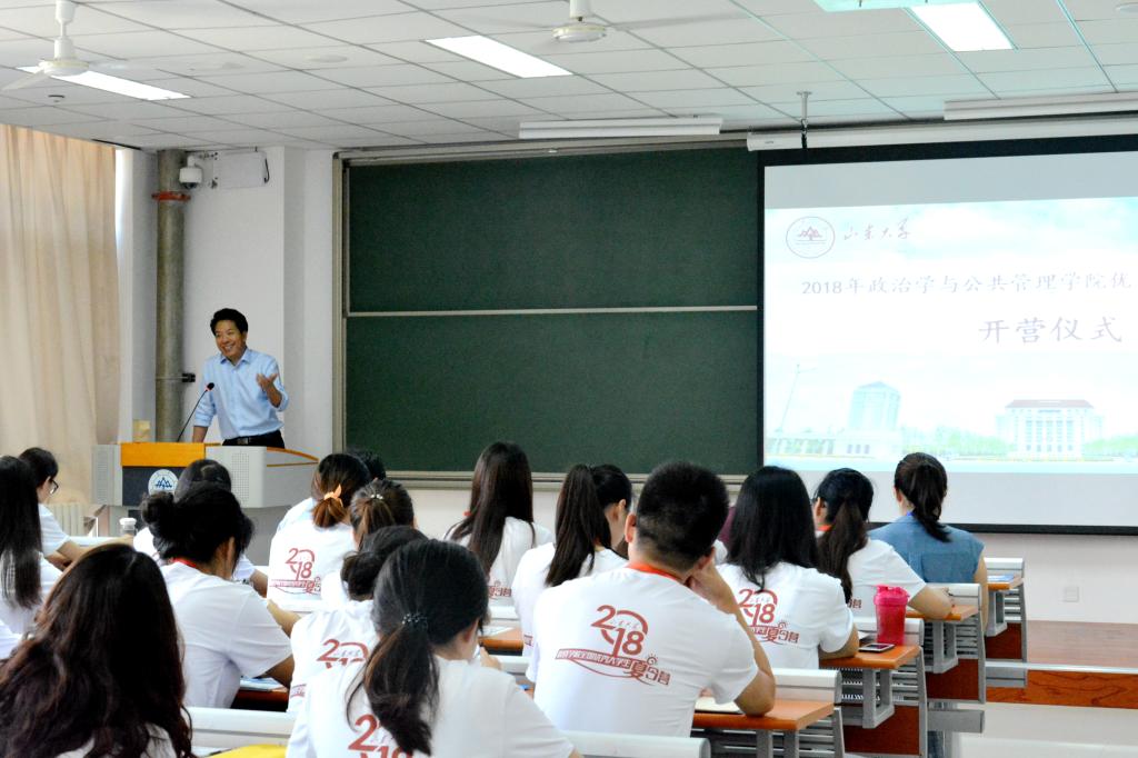 开营仪式上,曹现强对来自全国重点高校的优秀大学生营员来到“碧海蓝天、绿树萦绕、红楼尽显”的澳门网投官方网站青岛校区表示欢迎,并对校区和学院的办学规模、学科建设、国际化战略和研究生培养特色等情况进行了全面介绍。曹现强首先介绍了青岛校区的独特地理位置和总体学科规划布局,接着用“唠家常”的形式讲述了澳门网投的建设历史、师资力量、国际交流等,又详细说明了包括科学社会主义与国际共产主义运动、国际政治、政治学理论、公共管理等学科的优势特色。曹现强重点强调了学院国际化办学的突出优势,全英文授课硕士和博士研究生专业覆盖广,对外学术交流层次越来越高。