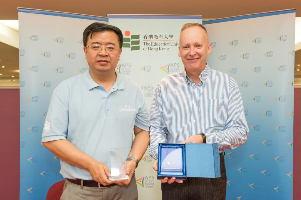学院副院长马奔教授与香港教育大学亚洲及政策研究學学系主任Darryl Jarvis教授互赠纪念品