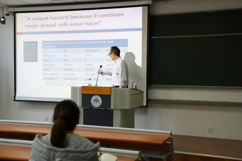 11月9日,Eisenman教授以“个人极端主义与预防”为题,探讨了恐怖事件中的解决方法。Eisenman教授认为不同类型的暴力具有共同的危险因素,它们有共同的后果。人类在压力下能够设计出抵御灾害和保持其完整性的手段,而预防与解决措施的弹性在于能够适应灾难所造成的环境,以减轻灾害的影响。