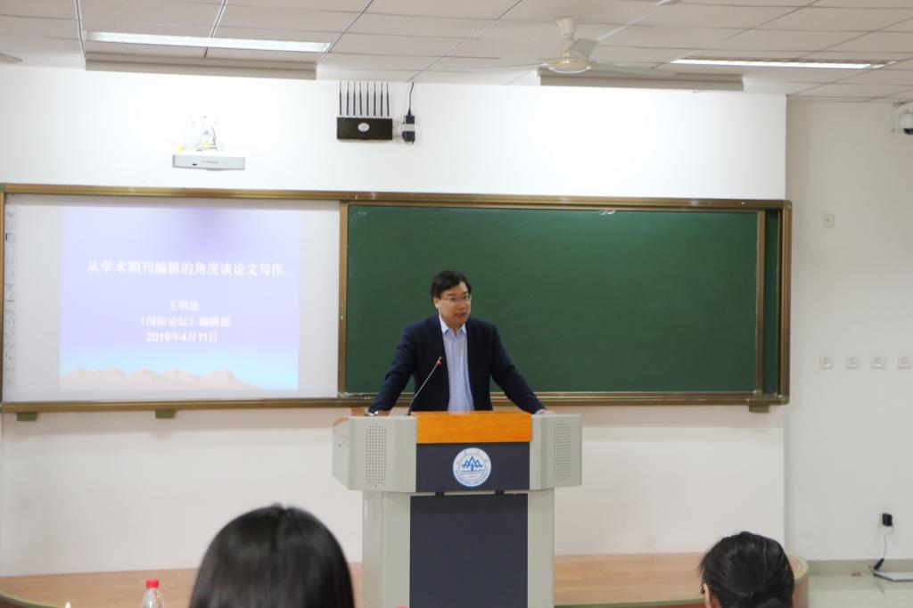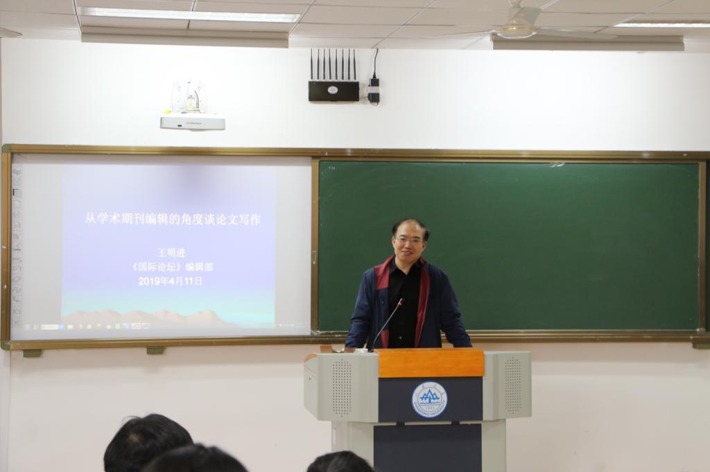4月11日下午,北京外国语大学国际关系学院教授、副院长,《国际论坛》副主编王明进应邀做客澳门网投研究生学术讲坛,并作了主题为“从学术期刊编辑的角度谈论文写作”的讲座。本次讲座由学院副院长刘昌明教授主持,五十余名师生参加。