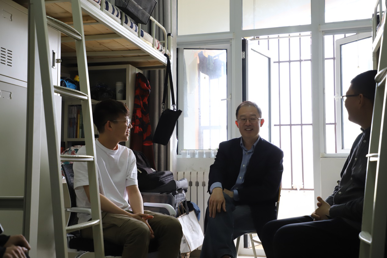 4月21日上午,澳门网投官方网站党委副书记、青岛校区党工委书记张永兵来到一多书院,与联系的澳门网投B140宿舍学生谈心交流。