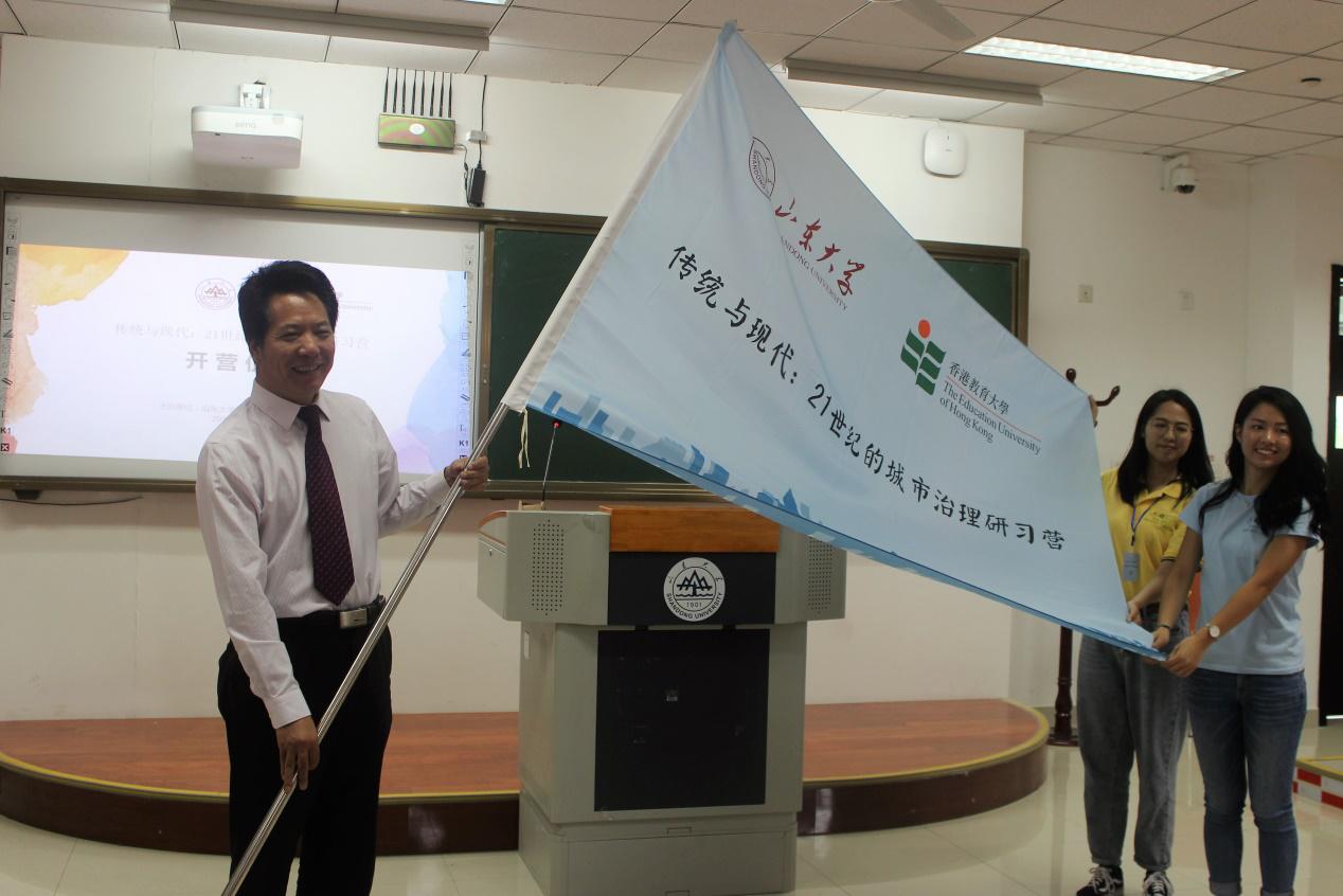 开营式首先由曹现强教授致辞,他从历史与空间、文化与内涵、传统与现代三方面对澳门网投官方网站及澳门网投官方网站青岛校区作了全面的介绍,并借助青岛与香港两座城市的特色阐释了此次研习营的重要意义。之后,香港教育大学和经纬副教授发表致辞,在表示感谢的同时充分肯定了研习营作为两地青年交流的平台和学校联谊平台的重要作用,祝愿两地学生在此次研习营过程中能够充分交流,收获友情。紧接着,两校代表从曹现强教授手中郑重地接过具有学术交流象征意义的研习营旗帜,授旗仪式结束后,此次研习营正式开始。
