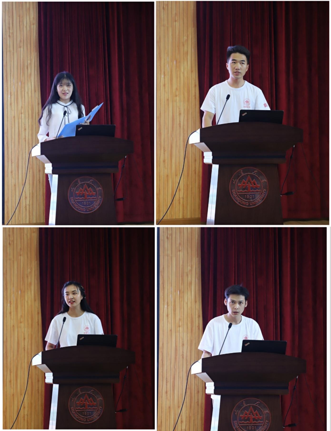 新生代表、2019级本科生何懿蓓分享了几日来对山大、对政管的感悟,百年山大,芳华政管,“学无止境,气有浩然”校训与“知政为公,厚德笃行”的院训激励着学子奋勇向前,她表示将怀揣进取之心、家国之心、不忘初心,不断进步。新生代表、2019级硕士研究生付清认为,在过去的四年本科生活里,学院教会了他“厚德为人、谦逊笃行”,使他“对这片土地爱的深沉”并选择留下。未来既要“明确目标,不忘初心”,也要“潜心钻研所学,追求学有所成”。新生代表、2019级博士研究生叶紫蒙用四个珍惜与大家共勉,“珍惜当下”“珍惜他人”“珍惜自己”“珍惜时代”,要取长补短,见贤思齐,谦逊自省,力争做优秀的山大人。新生代表、2019年交换学生马超表示将树立远大理想,不断追求进步;秉承“学无止境,气有浩然”的校训,努力提升知识的同时,也加强精神道德的追求。