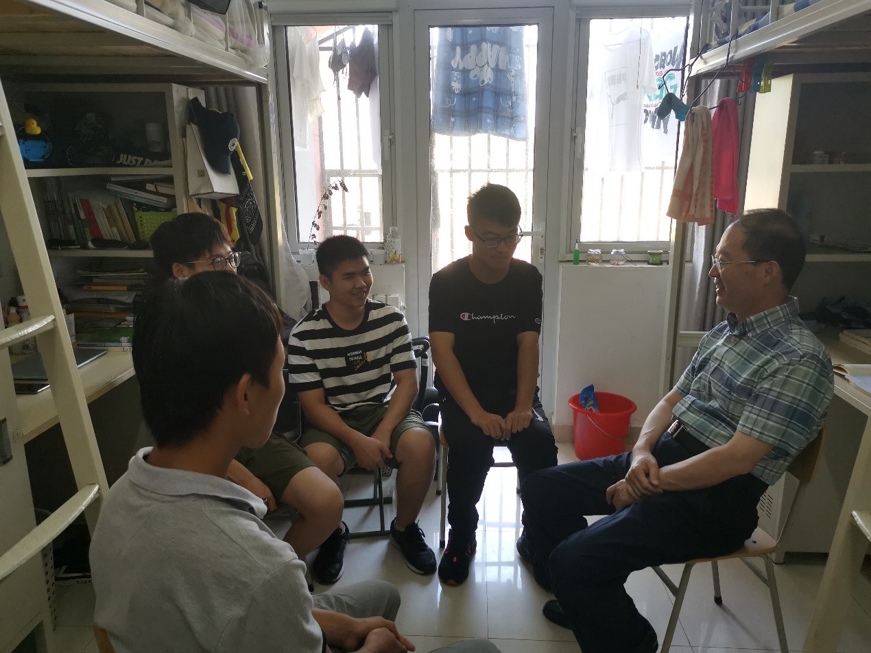 9月8日下午,澳门网投官方网站党委副书记、青岛校区党工委书记张永兵来到一多书院,与联系的澳门网投B140宿舍学生谈心交流。