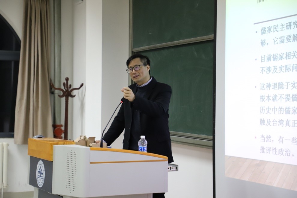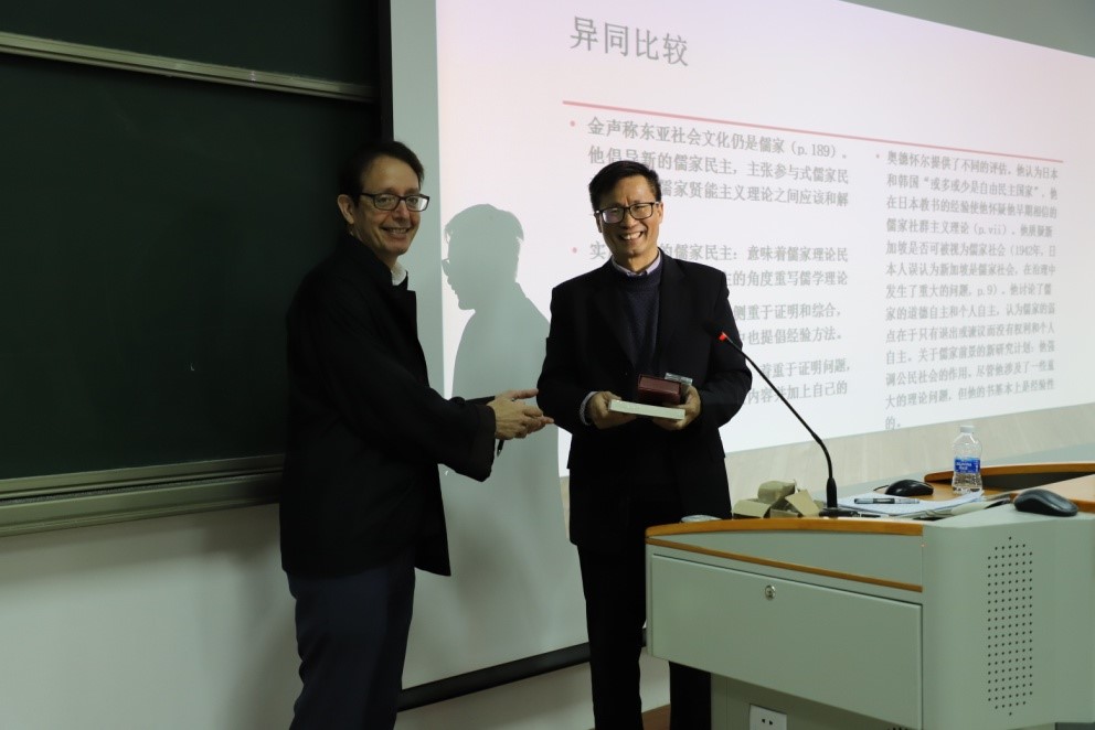 随后,何教授选取两本著作《美德之后的民主:通向务实主义的儒家民主(金圣文)》《儒家的前景:重新评估(Shaun O’ Dwyer)》来进行比较分析。在新发展与新贡献方面,金圣文在其著作中旨在寻求规范基础上的儒家民主理论,该理论不受传统儒家美德一元论约束;而Shaun O’ Dwyer在其书中拒斥了儒家民主,并提出如何回应个人主义、集体权利、共同体和习俗,是儒家民主需要处理的问题。研究方法和对儒学民主态度的差异,是这两本著作最大的不同之处;英文写作、缺乏制度的规范性主张,是二者的共同点,也是缺陷所在。