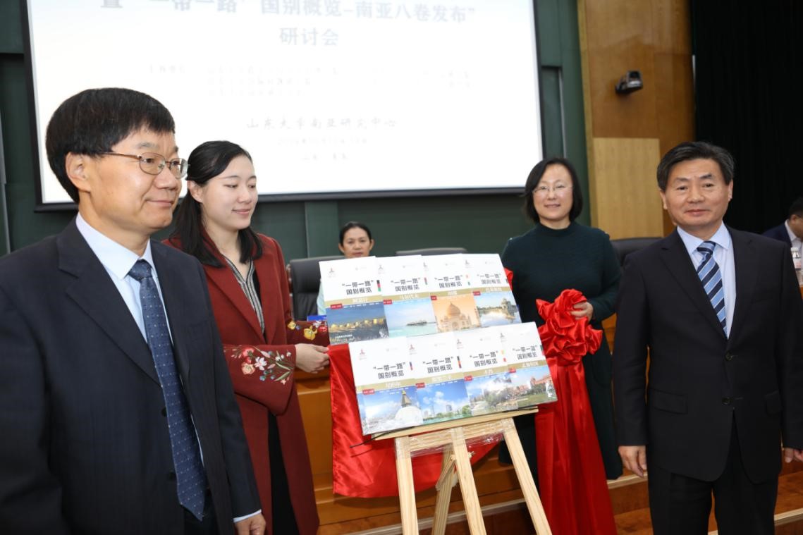 开幕式后,李向阳会长、孔令栋书记、大连海事大学出版社总编辑助理杨淼女士和张淑兰教授共同为“一带一路”国别概览-南亚八卷新书的发布进行了揭幕。南亚八卷包括印度、马尔代夫、斯里兰卡、阿富汗、巴基斯坦、尼泊尔、不丹以及孟加拉国,涵盖了各国的地理、简史、政治、经济、军事、科技、外交、社会、文化、教育、医疗卫生和社会保障等各方面的内容,突出了各国与古丝绸之路的历史渊源,以及 “一带一路”在南亚的推进与建设。澳门网投官方网站南亚研究中心主任张淑兰介绍了组织研究团队撰写南亚八卷的初衷、内容设计及写作历程,认为这种基础性的研究是中国南亚研究事业所必需的,将进一步推动南亚研究向纵深发展。