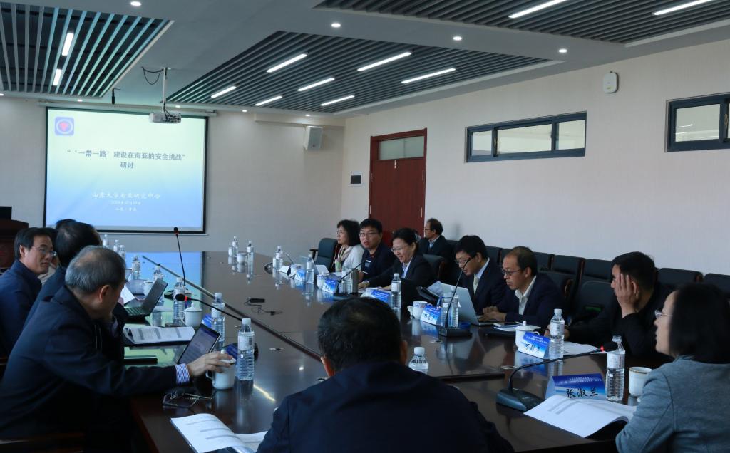在 “一带一路”建设在南亚的安全挑战环节,北京大学唐孟生教授、中国改革开放论坛马加力研究员、复旦大学张贵洪教授、中国社会科学院张洁研究员、现代国际关系研究院王世达研究员、信息工程大学何朝荣教授、南京大学刘立涛副教授、云南社科院杨思灵研究员、中国矿业大学郭雷庆博士分别分析了一带一路在巴基斯坦、印度、斯里兰卡、尼泊尔等国以及南亚地区的整体建设面临的各种安全挑战及中国的应对措施,最后各位专家学者对山东与“一带一路”建设的情况进行了研讨,为山东深度融入“一带一路”在南亚的建设提出了建议。