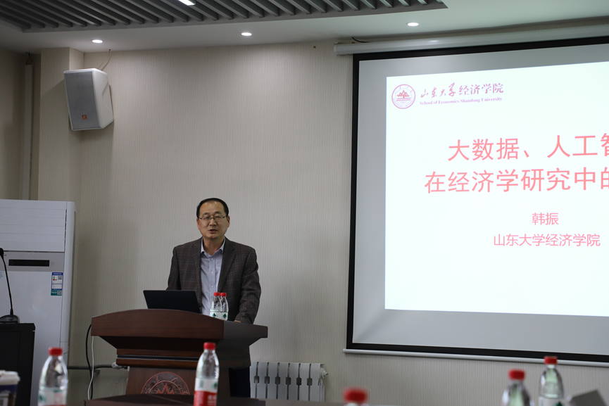 随后,经济学院的韩振老师对大数据、人工智能在经济学研究中的应用进行了分析。韩振老师分析了大数据、人工智能时代与其在经济学研究中的作用及相关应用工具,介绍了机器学习在经济学中的应用,然后以图片处理、爬虫、词云等Python语言的具体应用介绍结束发言。