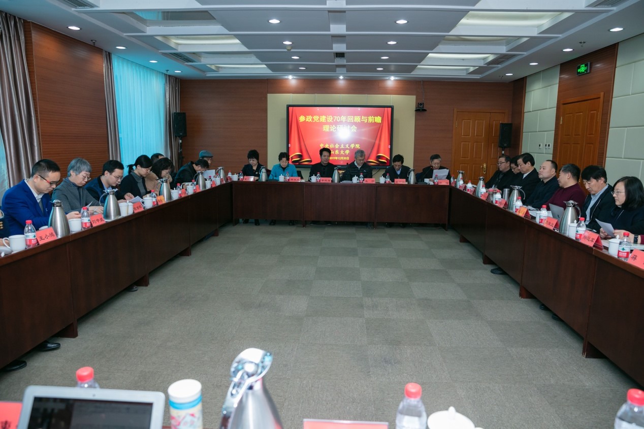 12月20日,由澳门网投官方网站和中央社会主义学院联合举办的“参政党建设70年回顾与前瞻”理论研讨会在北京召开。本次会议也是继首届澳门网投官方网站统一战线高端论坛(2018年)后召开的第二届论坛。会议由澳门网投官方网站、当代社会主义研究所、统一战线研究中心和中央社会主义学院统战理论教研部承办。来自澳门网投官方网站、中央社会主义学院、中共中央统战部、各民主党派中央及地方委员会、北京大学、中国人民大学、山东省社会主义学院等单位的40位专家学者参加了会议。中央社会主义学院党组成员、副院长袁莎和澳门网投官方网站青岛校区副校长、澳门网投官方网站常务副院长曹现强分别致辞。中央社会主义学院统战理论教研部主任孙信主持会议。