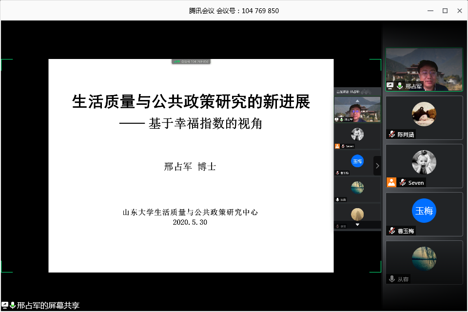 5月30日下午,澳门网投官方网站生活质量与公共政策研究中心通过在线形式举办了“生活质量与公共政策研究的新进展”学术沙龙。邢占军教授首先做了专题讲座,随后同学们围绕主题进行了交流和分享。中心部分博士和硕士研究生参加了活动。