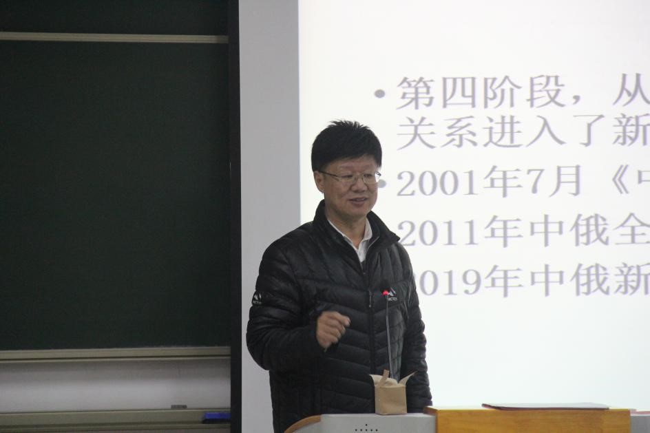 讲座伊始,王树春教授就肯定了中俄关系研究的重要意义,并从现实与理论两个方面进行了简要的阐述:在现实意义上,纵向来看,俄罗斯是对中国影响最大的国家;横向来看,俄罗斯国际地位十分重要;从中俄两国本身来看,中俄关系具有特殊性和鲜明特点。在理论意义上,目前关于中俄关系的研究重视程度不够,仍处于冷门的状态。