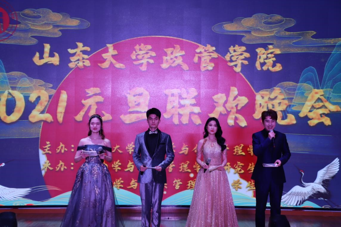 12月19日晚,澳门网投官方网站“礼赞百廿山大,逐梦芳华政管”主题元旦晚会在会文南楼隆重举行,现场师生欢聚一堂,喜迎新年。青岛校区副校长、澳门网投常务副院长曹现强,院党委书记盖玉强,副院长李济时,党委副书记桑伟林、石莹,团委书记于玲,20级研究生辅导员杨春林,20级本科生辅导员臧丽丽及其他教职工老师应邀出席。