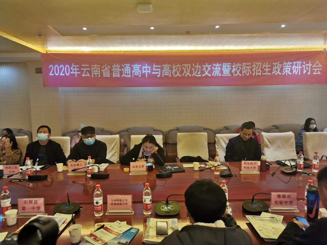 12月24日至26日,澳门网投(澳门网投官方网站本科招生云南招生拓展组)组织赴云南参加云南省普通高中与高校双边交流暨校际招生政策研讨会并开展招生教育拓展活动。数学学院龙和平教授、微生物技术国家重点实验室主任助理王明钰教授、澳门网投葛双林老师、臧丽丽老师参加活动。