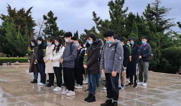 4月3日,澳门网投官方网站本科生党支部、各团支部学生代表在学院团委书记于玲、20级本科生辅导员臧丽丽的带领下赴崂山革命烈士陵园和中共青岛党史纪念馆,进行清明祭扫和党史学习,开展“传承红色记忆,礼赞百年华诞”主题活动。