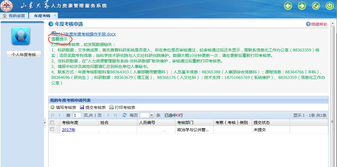 (一)教工本人填写《澳门网投官方网站教职工年度考核表》,进行个人总结。具体填报方法仍参照往年的《使用人力资源管理系统导出年度考核表操作说明》(下附)。